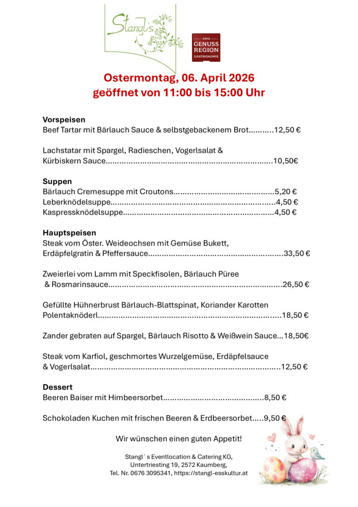 In dem Bestreben, Ihnen weiterhin besten Service vor Ort zu bieten müssen wir leider die Öffnungszeiten pro Lokation reduzieren. Für gute Information sowie klare Unterscheidung der beiden Lokale gibt es nun die Übergeordnete Seite stangl-esskultur.at